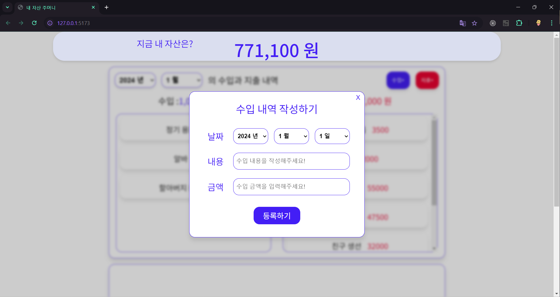 단일 Modal 컴포넌트 props 사용해서 수입/지출 내역 관리하기 [Warning: React does not recognize the modalColor prop on a DOM element.] (0) | 2024.08.17 |