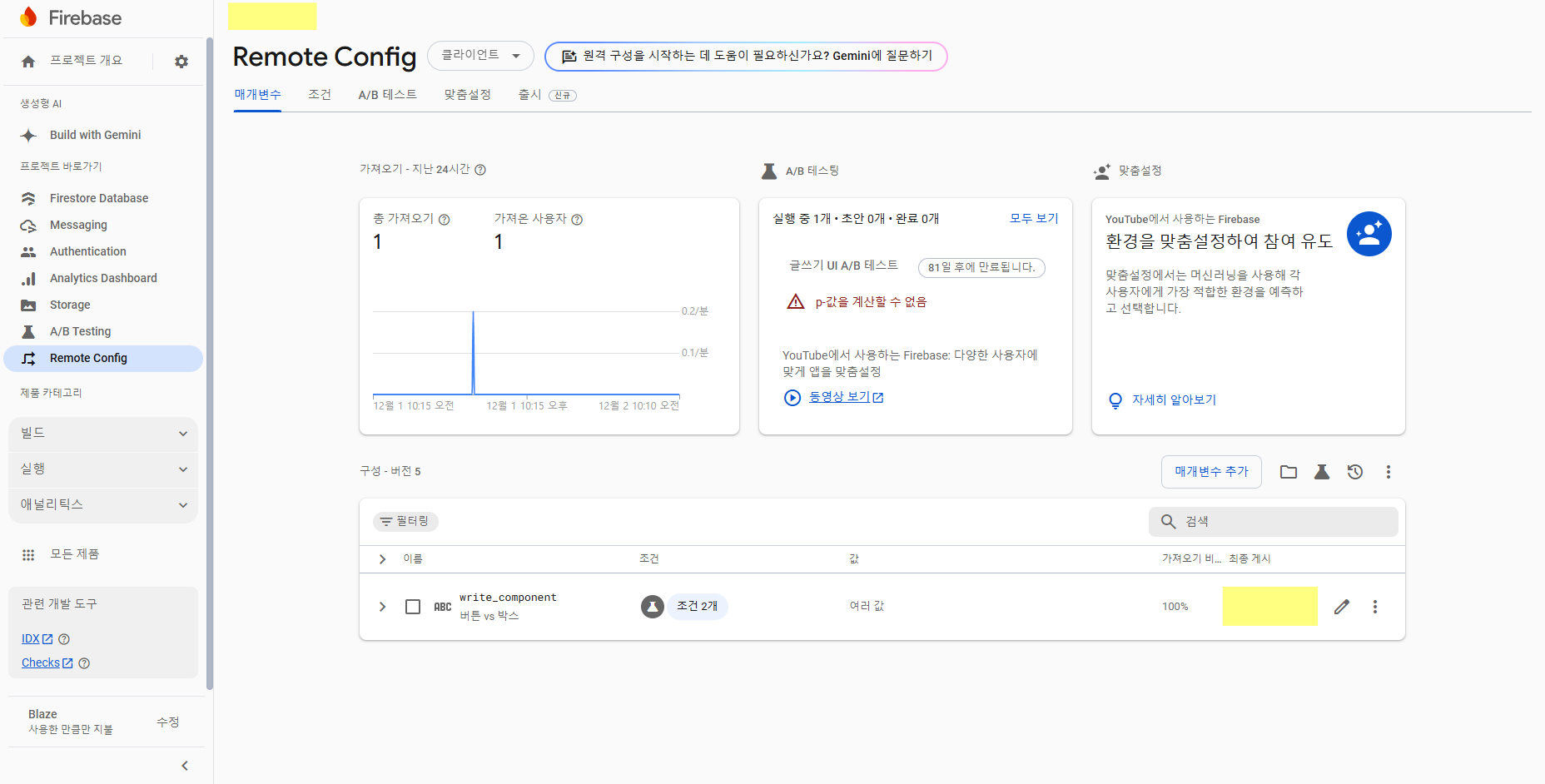 우선 A/B 테스트를 사용하려면 Remote Config를 먼저 설정해야 한다.