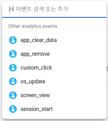 Firebase에서 기본 제공하는 이벤트 중 기록이 많이 잡힌 이벤트만 선택할 수 있었다.
