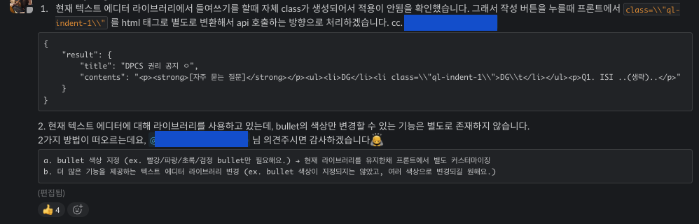텍스트 에디터 라이브러리를 도입한 후, CS팀을 통해 사용자 이슈가 들어왔다.